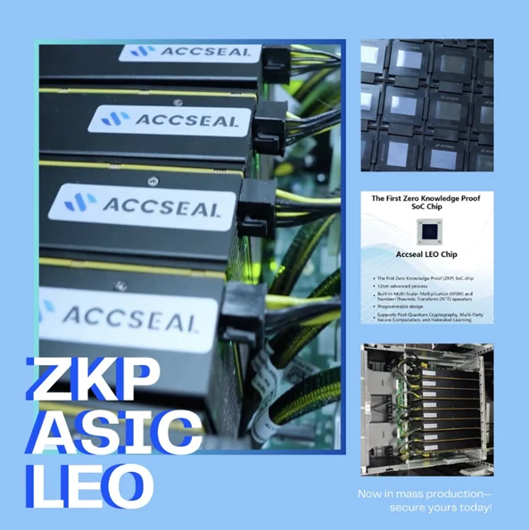 ZPN 퍼블릭 체인에 적용되는 ACCSEAL사의 영지식 증명(ZKP) SoC 가속칩은 12nm 제조 공정을 사용하며, 타사 칩 대비 약 1,000배 이상의 연산능력과 복잡한 MSM 및 NTT 계산을 수행할 수 있다.
